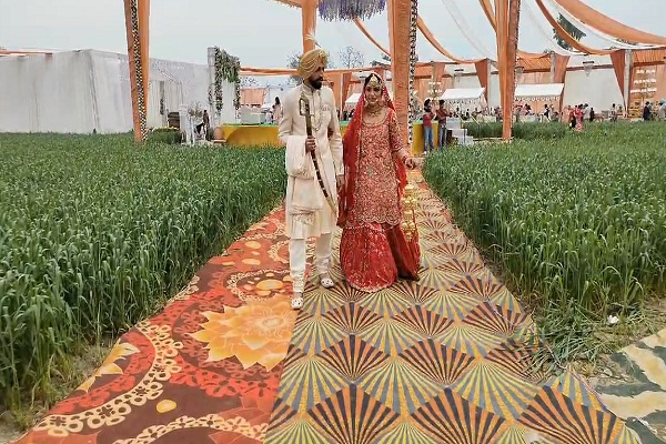 जानकारी के मुताबिक, कनाडा के रहने वाले लड़के दुर्लभ और लड़की हरमन ने विदेश छोड़कर पंजाब की धरती पर शादी करने का फैसला किया। हरमन अपने होने वाले पति दुर्लभ के घर बरात लेकर पहुंचीं। पति के खेतों में ही बड़ा टैंट लगाकर खड़ी फसल में विवाह किया गया। दूल्हा-दुल्हन ने कहा कि हम किसानों द्वारा दिल्ली सरहद पर किए गए संघर्ष से प्रेरित हुए थे। इसलिए हम लोगों को संदेश देना चाहते थे कि अपनी जमीन से जुड़े रहना चाहिए।