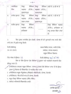 यह उक्त आदेश मुख्यमंत्री सी.एम. मान के नेतृत्व में जारी किए गए हैं। जिन काडरों के तबदाले व तैनाती की गई है उनकी सूची नीचे दी गई है।