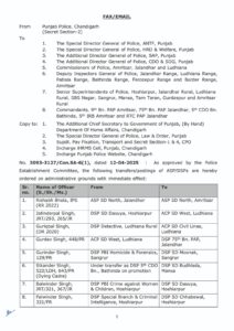 मोहालीः पंजाब में लगातार पुलिस अधिकारियों के तबादलें किए जा रहे है। वहीं आज एक बार फिर से एक IPS सहित 21 पुलिस अधिकारियों के हुए तबादले किए गए। जिसमें जालंधर के IPS Rishabh Bhola भी शामिल है। Rishabh Bhola को अमृतसर में ट्रांसफर किया गया। वहीं Jalandhar Range के DSP ANTF Inderjit Singh और DSP Davinder Singh को देहात में लगाया गया। देखें लिस्ट