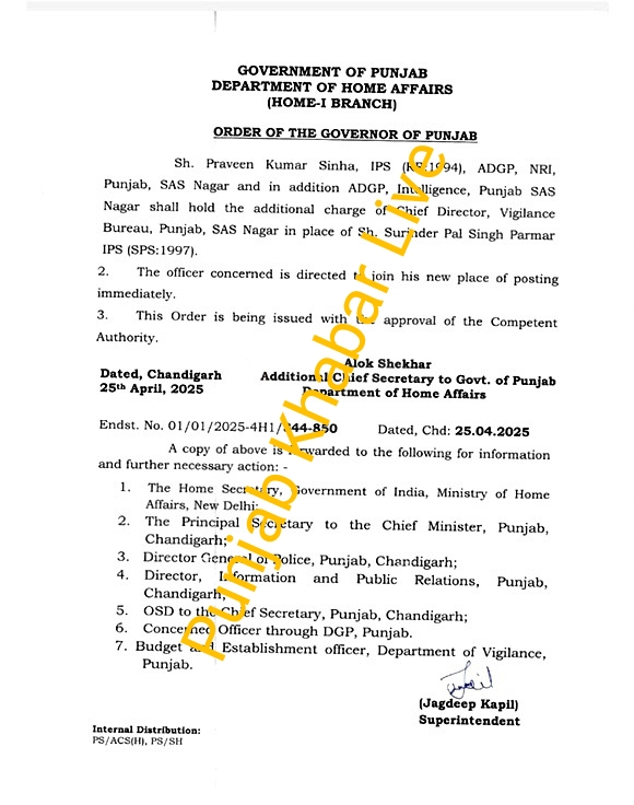 पंजाब के सीएम भगवंत सिंह मान ने भ्रष्टाचार के खिलाफ कार्रवाई करते हुए तीन बढ़े अधिकारियों को जहां तुरंत प्रभाव से सस्पेंड किया है वहीं उनकी विभागीय जाँच भी खोल दी है इतना ही नही FIR की तैयारी भी इन अधिकारियों के खिलाफ करने जा रही है वहीं इसी बीच पंजाब सरकार ने पंजाब में नए विजिलेंस चीफ प्रवीण कुमार सिन्हा को लगाया है।