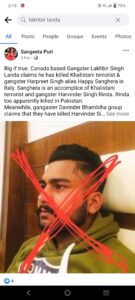 कनाडा में बैठे लखबीर सिंह उर्फ लंडा ही हैप्पी संघेड़ा के कत्ल के पीछे है। लंडा ने दावा किया है कि संघेड़ा का कत्ल उसने करवाया है। वह आतंकी रिंदा के करीब था, लेकिन उसके उलटा चलना शुरू हो गया था। जिससे उसे व उसके साथियों को नुकसान हो गया था।
