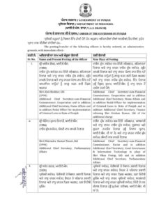 पंजाब में तबादलों का दौर लगातार जारी है। इसी कड़ी के तहत पंजाब सरकार की तरफ से आज 17 आई.ए.एस. व पी.सी.एस. अधिकारियों का तबादला किया गया है। अतः जिन अधिकारियों के तबादले हुए हैं, उनमें अधिकारियों की ट्रांसफर हुई है, उनमें आई.ए.एस. अलोक शेखर, धीरेंद्र कुमार तिवारी, बसंत गर्ग, अनिंदिता मित्रा व अऩ्यों के नाम शामिल है। बाकी अधिकारियों के नामों की लिस्ट निम्न है।