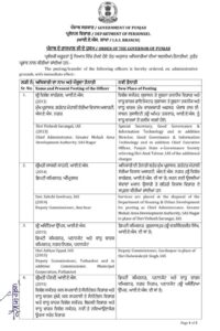 पंजाब में 6 IAS अधिकारियों के तबादलें किए गए। सूचि के अनुसार आईएएस विशेष सारंगल, साक्षी साहनी अदित्या उप्पल, पल्लवी, दलविंदरजीत सिंह और हरप्रीत सिंह का तबादला किया गया।