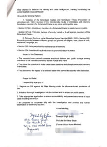 राजा वडिंग के खिलाफ जातिसूचक टिप्पणी मामले में धारा 353, 196 बीएनएस 2023 तथा धारा 3(1)(u), 3(1)(v) एससी/एसटी अत्याचार निवारण अधिनियम 1989 के तहत एफआईआर दर्ज की गई है। वहीं मजहबी सिख संगठन लगातार राजा वडिंग के खिलाफ कार्रवाई की मांग कर रहे है। पंजाब पुलिस ने एफआईआर दर्ज कर मामले की जांच शुरू कर दी है। दूसरी ओर SC कमीशन ने भी राजा वडिंग को नोटिस भेजा हुआ है। नेशनल SC कमीशन ने तरनतारन के डिप्टी कमिश्नर और SSP से 7 दिन में कार्रवाई को लेकर जवाब तलब कर लिया है। यह कार्रवाई भाजपा नेता तरूण चुग के बयान पर की गई है।