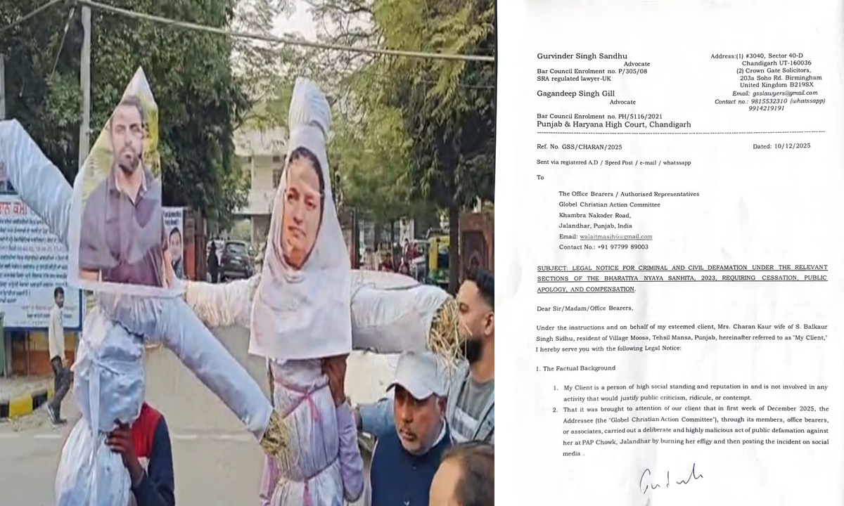 चेतावनी दी गई है कि समय पर माफी न मांगने पर बीएनएस की धारा 356 के तहत केस दर्ज कराया जाएगा, जिसमें 2 साल जेल तक का प्रावधान है। 10 दिसंबर को डीसी दफ्तर के बाहर प्रदर्शन के दौरान गलती से चरण कौर का पुतला लाने की बात क्रिश्चियन समुदाय पहले ही मान चुका है, लेकिन इस घटना से सिद्धू मूसेवाला के प्रशंसकों में काफी नाराजगी है।