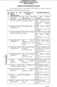 मोहालीः पंजाब में पुलिस अधिकारियों के लगातार तबादलें हो रहे है। वहीं जारी आदेशों के अनुसार आज 22 आईपीएस अधिकारियों के तबादलें किए गए है। देखें लिस्ट