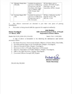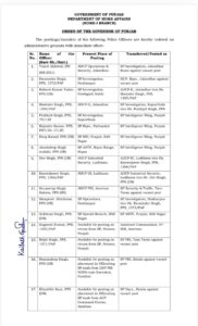 मोहाली: पंजाब पुलिस विभाग में एक बार फिर बड़ा प्रशासनिक फेरबदल किया गया है। सरकार ने कई अधिकारियों की पोस्टिंग और ट्रांसफर के आदेश जारी किए हैं।