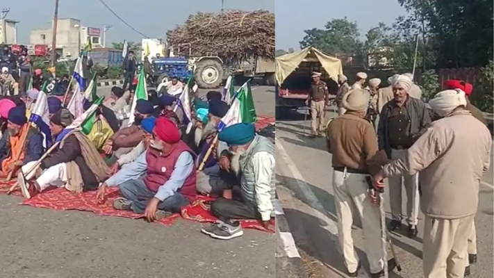 (PKL): गन्ना के मूल्य में बढ़ोत्तरी की मांग को लेकर जालंधर-पठानकोट नेशनल हाईवे पर किसानों का धरना दूसरे दिन भी जारी रहा। हालांकि किसानों ने एक तरफ से हाइवे खोला है। इससे आवागमन बाधित नहीं है। जबकि हाईवे पर धरने पर बैठे किसानों को लेकर पुलिस ने खदेड़ना शुरू कर दिया है। इस दौरान पुलिस ने कई किसानों को हिरासत में ले लिया है और गाड़ियों में बिठाकर ले जाना शुरू कर दिया है। जिसके बाद किसानों द्वारा प्रशासन के खिलाफ नारेबाजी की जा रही है। वहीं किसान मजदूर संघर्ष कमेटी के प्रधान श्याम सिंह ने बताया कि सरकार द्वारा किसानों के साथ किए वादे अनुसार गन्ने का मांग अनुसार रेट नहीं बढ़ाया गया। बल्कि 11 रुपये शगुन का कहर और भद्दा मजाक किया गया है।