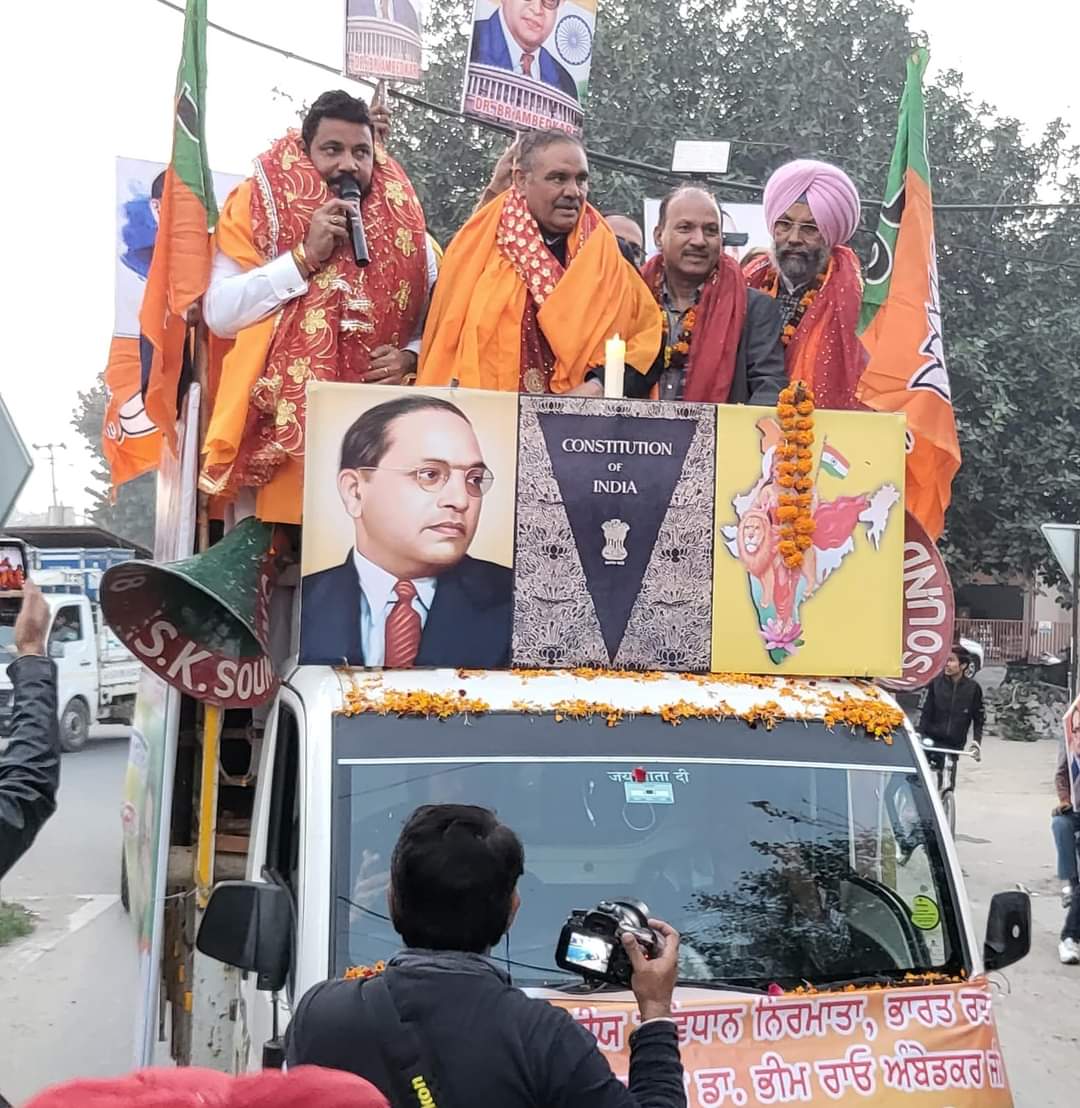 इस अवसर पर भाजपा अनुसूचित जातियों मोर्चा के प्रदेश प्रधान एस. आर. लद्धड़ ने कहा कि संविधान निर्माता बाबा साहब अंबेडकर ने महिलाओं और पुरुषों को बराबरी का अधिकार दिलाया। महिलाओं को भी पुरुषों के बराबर वोट देने का अधिकार दिलाया। मैटरनिटी लीव का प्रावधान भी उनकी सिफारिश पर हुआ। औरतों और मर्दों को काम करने का समान अधिकार भी उन्होंने ने ही दिलाया। उन्होंने रॉबिन सांपला द्वारा आयोजित यात्रा की भी भारी प्रशंसा करते हुए कहा कि रॉबिन सांपला के नेतृत्व में एस. सी. मोर्चा द्वारा एक शानदार और सफल यात्रा आयोजित करके बाबा साहब की शिक्षाओं का प्रचार कर के सराहनीय काम किया है।
