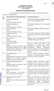 जालंधर सहित पंजाब के 48 इस और पीसीएस अधिकारियों के तबादले हुए हैं। वहीं जारी सूची में जालंधर एस.डी.एम.-1 को भी तबदील कर दिया गया है। जिसके बाद जालंधर एस.डी.एम.-1 में जयइंद्र सिंह को लगाया गया है, इससे पहले गुरसिमरन सिंह ढिल्लों के हाथों कमान थी। वहीं अमित महाजन को आर.टी.ए. सैक्रेटरी लगाया गया है। देखें लिस्ट