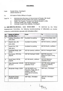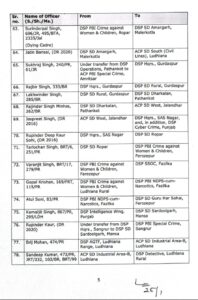 पंजाब में पुलिस अधिकारियों के तबादलों का दौर लगातार जारी है। आज कुछ देर पहले ही 91 पुलिस अधिकारियों के तबादलें हुए थे। उसके कुछ देर बाद ही 183 डीसीपी और एसीपी रैंक के अधिकारियों के तबादलें हो गए है। देखें लिस्ट