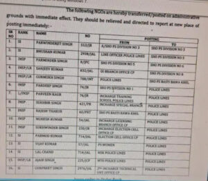 जालंधर से बड़ी खबरः 16 SHO स्तर के अधिकारियों के हुए तबादलें, देखें लिस्ट Post navigation पंजाब से बड़ी खबरः Beer के शौकीनों के लिए अहम खबर, लग सकता है बड़ा झटका अभी अभी बड़ी खबरः आतंकियों की गोलीबारी में अमृतसर के सिख की मौत