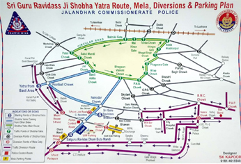 इस शोभायात्रा को ध्यान में रखते हुए ट्रैफिक पुलिस ने रूट प्लान जारी किया है। जिसमें प्रतापपुरा मोड़, वडाला चौंक, गुरु रविदास चौंक, तिलक नगर रोड़, बूटा पिंड मोड़, मेनब्रो चौंक, मोड़ बावा सूज फैक्ट्री, जग्गू चौंक (सिद्धार्थ नगर रोड़), टी-प्वाइंट खालसा स्कूल नकोदर रोड़, नकोदर चौंक, गुरु अमरदास चौंक, समरा चौंक, अर्बन एस्टेट फेज-2 आदि की ओर ट्रैफिक डायवर्ट किया गया है।