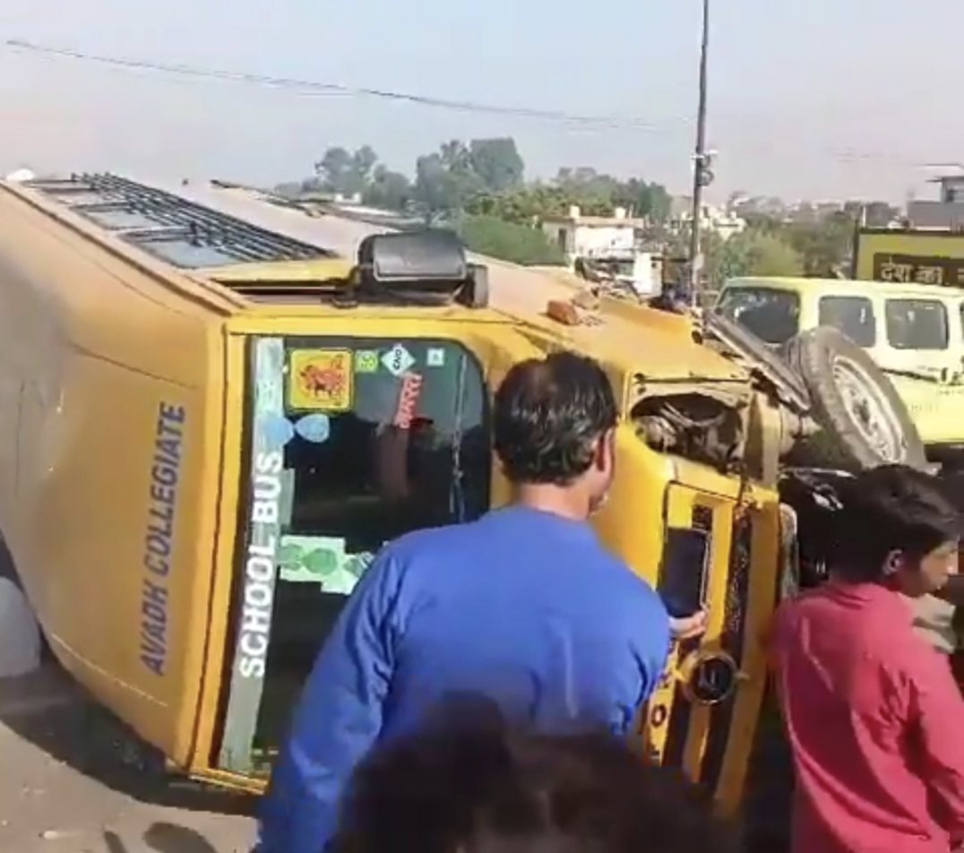 राजधानी लखनऊ में बड़ा हादसा होने का मामला सामने आया है। जहां तेज रफ्तार स्कूल बस बुद्धेश्वर के पास पुल के ऊपर डिवाइडर से टकरा गई, इस हादसे के बाद अनियंत्रित होकर बस पलट गई। स्कूली बस पलटने के बाद मौके से बस का चालक मौके से फरार हो गया। गनीमत यह रही कि इस हादसे के समय स्कूली बस में कोई भी स्कूली बच्चे बस में सवार नहीं थे। स्कूली बस पलटने से सड़क पर जाम लग गया। जिसके बाद स्थानीय लोगों ने पुलिस को दी जानकारी दी।