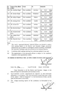 पंजाब में 114 नए जजों को नियुक्त किया गया है, जिसमें जालंधर के जज भी शामिल है। देखें लिस्ट Post navigation पंजाब से बड़ी खबरः 2 दिन नहीं चलेगी सरकारी बसें, कर्मियों का ऐलान पंजाब से बड़ी खबरः आतंकी पन्नू ने रवनीत बिट्टू और हंसराज को दी धमकी