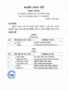 पंजाब में लोकसभा चुनावों को लेकर भाजपा ने 3 उम्मदीवारों की सूची जारी कर दी है। भाजपा ने बठिंडा ने मलूका की बहू और आईएएस परमपाल कौर सिद्धू को मैदान में उतारा है। वहीं होशियारपुर से मंत्री सोमप्रकाश की पत्नी अनिता सोमप्रकाश को टिकट दी गई है, जबकि खडूर साहिब से मनजीत सिंह मन्ना को उम्मीदवार घोषित किया है।