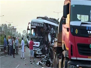 लुधियाना के समराला में आज तड़के 5 से साढे 5 बजे के बीच गांव चेहलां के नैशनल हाईवे पर इंदौर से चली चार धाम यात्रा के लिए यात्रियों से भरी बस सड़क के बीच खड़े टिप्पर ट्राले में जा घुसी। उक्त हादसा इतना भयानक था कि ब स पूरी तरह क्षतिग्रस्त हो गई और बस में बैठे यात्रियों में चीख-पुकार मच गई। बताया जा रहा है कि उक्त श्रद्धालुओं से बस करीब 1 महीने से धार्मिक टूर पर थे।