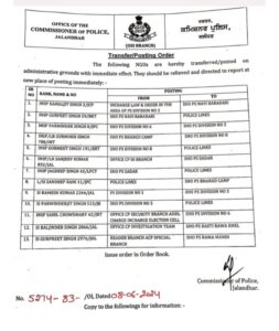 जालंधर में 13 SHO और SI के तबादले हो गए हैं। जारी लिस्ट के मुताबिक बस्ती बावा खेल के एसएचओ, डिवीजन नंबर 2, थाना 3, थाना 8, थाना 6, भार्गव कैंप थाना, एसएचओ सदर, आफिस सीपी ब्रांच सहित कई एसआई के तबादले हुए हैं। देखें लिस्ट
