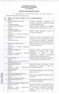 पंजाब में तबादलों का दौर जारी है। इसी बीच बड़े प्रशासनिक फेरबदल की खबर सामने आई है। जानकारी के अनुसार पंजाब सरकार ने राज्य में 49 आई.ए.एस. व पी.सी.एस. अधिकारियों के तबादले किए हैं। अतः जिन अधिकारियों के तबादले हुए हैं। इनमें संयम अग्रवाल को हायर एजुकेशन का डायरेक्टर, वहीं गुरप्रीत औलख को तरनतारन का नया डी.सी., आई.ए.एस. गौरी पराशर जोशी स्पेशल सचिव प्रसोनल लगाए गए हैं। देखें लिस्ट