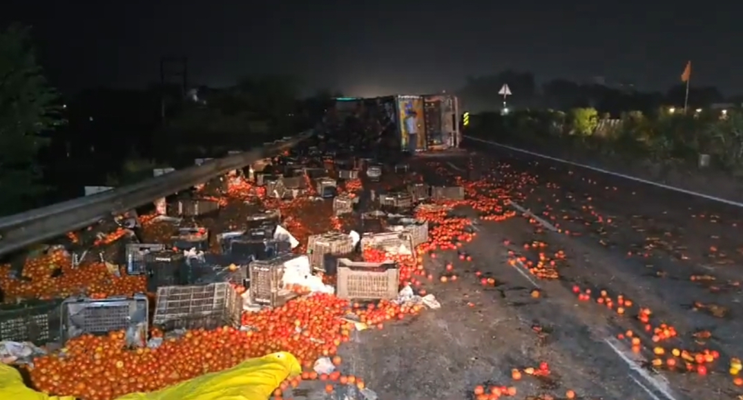 झांसी के शिवपुरी-ग्वालियर हाईवे बाइपास पर गुरुवार आधी रात को एक ट्रक हादसे में बड़ा हंगामा हुआ। बेंगलुरु से दिल्ली जा रहे इस ट्रक में 1800 किलो टमाटर लदे थे, जो हादसे के बाद पूरे हाईवे पर फैल गए। ट्रक अनियंत्रित होकर पलट गया, जिससे वहां से गुजर रही स्कूटी सवार महिला घायल हो गई। उसे तुरंत अस्पताल पहुंचाया गया। कानपुर हाईवे पर टमाटर से भरा ट्रक पलट गया, जिसे देख लोगों की भीड़ टमाटर लूटने के इरादे से दौड़ पड़ी। लेकिन तभी पुलिस वहां पहुंच गई और महंगे टमाटर की सुरक्षा के लिए पूरी रात पहरा दिया।