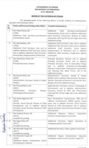 पंजाब में पुलिस अधिकारियों के तबादलों का दौर लगातार जारी है। वहीं आज जारी आदेशों के मुताबिक बड़े पैमाने पर प्रशासनिक फेरबदल किया गया। जारी लिस्ट के अनुसार 10 IAS और 22 PCS अफसरों के तबादले किए गए। देखें लिस्ट